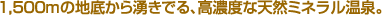 1,500mの地底から湧きでる、高濃度な天然ミネラル温泉。